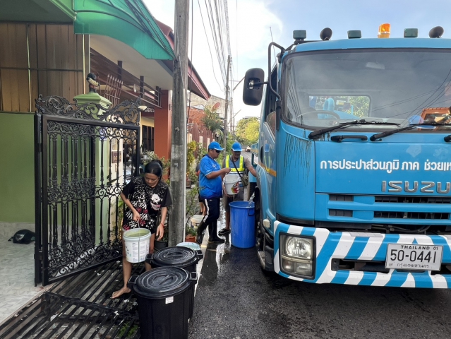 วันอาทิตย์ที่ 30 พฤศจิกายน 2568 การประปาส่วนภูมิภาคสาขาบางสะพาน โดยนายณรงค์ชัย จงดี ผู้จัดการการประปาส่วนภูมิภาคสาขาบางสะพาน ได้มอบหมายให้ นายพิสิษฐ์ เข็มโต นายช่างไฟฟ้า 5 งานผลิต กปภ.สาขาบางสะพาน ร่วมกับ กปภ.เขต 3 กปภ.สาขาเพชรบุรี และ กปภ.สาขาปราณบุรี ลงพื้นที่นำรถบรรทุกน้ำสะอาดเข้าแจกจ่ายน้ำให้กับรพ.สงขลา , เหล่ากาชาดจังหวัดสงขลา , หอประชุมศาลากลางจังหวัดสงขลาและชุมชนเตาหลวงซอย 2 รวมทั้งกระจายน้ำสะอาดให้ชุมชนต่างๆ ในเขต อำเภอหาดใหญ่ และพื้นที่ที่ประสบอุทกภัยและมีน้ำประปาไม่เพียงพอ จนกว่าสถานการณ์จะกลับเข้าสู่ภาวะปกติ