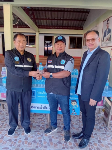 วันศุกร์ ที่ 28 เดือนพฤศจิกายน 2568 การประปาส่วนภูมิภาคสาขาแม่สาย นายคมสัน สัมมา ผู้จัดการการประปาส่วนภูมิภาคสาขาแม่สาย ได้มอบหมายให้พนักงานและลูกจ้างในสังกัด เข้าร่วมกิจกรรมหน่วยแพทย์เคลื่อนที่ (พอ.สว.) ประจำปี 2568 ในวันศุกร์ ที่ 28 พฤศจิกายน 2568 ณ โรงเรียนบ้านพ่อหลวงอุปถัมภ์5 บ้านผาหมี หมู่ที่ 6 ตำบลเวียงพางคำ อำเภอแม่สาย จังหวัดเชียงราย พร้อมทั้งสนับสนุนน้ำดื่ม ตราสัญลักษณ์ กปภ.แก่ผู้เข้าร่วมกิจกรรม จำนวน 200 ขวด