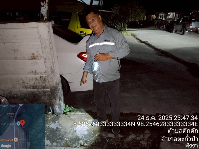 วันพุธที่ 24 ธันวาคม 2568 นายธำรง คุ้มเพชร ผู้จัดการการประปาส่วนภูมิภาคสาขาตะกั่วป่า มอบหมายให้หัวหน้างานและพนักงานในสังกัด ลงพื้นที่ปฏิบัติการทำ Step Test ค้นหาท่อแตกท่อรั่วบริเวณพื้นที่ DMA-03 เขาหลักฝั่งซ้ายและDMA-04 ปตท.คึกคัก ตั้งแต่ซอยหาดนางทอง หมู่ที่3 , 7 ตำบลคึกคัก อำเภอตะกั่วป่า จังหวัดพังงา ตั้งเเต่เวลา 22:00 น. ถึง 03:00 น. เดินเท้าหาท่อแตกรั่ว เพื่อแก้ไขปัญหาน้ำไหลอ่อน ลดอัตราการเกิดน้ำสูญเสีย ให้เป็นไปตามยุทธศาสตร์การดำเนินงานของ กปภ. ทั้งนี้พบจุดแตก-รั่ว ได้พบจุดรั่วเป็นท่อ HDPE 110 จำนวน 1 จุด , ท่อ HDPB 50 จำนวน 2 จุด , ท่อ HDPB 25 จำนวน 2 จุด และ ท่อ HDPB 20 จำนวน 4 จุด ดำเนินการแก้ไขและซ่อมแซมโดยแล้วเสร็จ