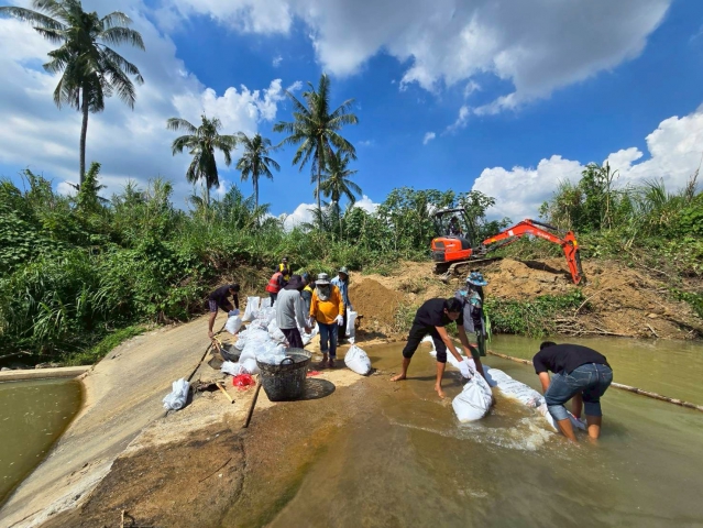 วันอังคารที่ 23 ธันวาคม 2568 การประปาส่วนภูมิภาคสาขาบางสะพาน นำโดยนายณรงค์ชัย จงดี ผู้จัดการการประปาส่วนภูมิภาคสาขาบางสะพาน นายสมโภชน์ ใหม่ทอง หัวหน้างาน 8 งานบริการฯ นายธีระพงษ์ นุชมงคล หัวหน้างาน 8 งานผลิต พร้อมด้วยพนักงานในสังกัด ร่วมกันกั้นฝายชะลอน้ำด้วยกระสอบทราย เพื่อชะลอการไหลของน้ำดิบในคลองร่อนทองเป็นการยกระดับน้ำดิบเพิ่มขึ้นให้เพียงพอต่อการสูบน้ำดิบเข้ากระบวนการผลิต มีน้ำประปาเพียงพอต่อความต้อง การใช้ของประชาชน อีกทั้ง กำชับให้เจ้าหน้าที่เฝ้าระวังประมาณน้ำดิบในคลองร่อนทอง รายงานสถานการณ์ทุกวัน เพื่อเตรียมความพร้อมรับมือในช่วงสถานการณ์ภัยแล้ง