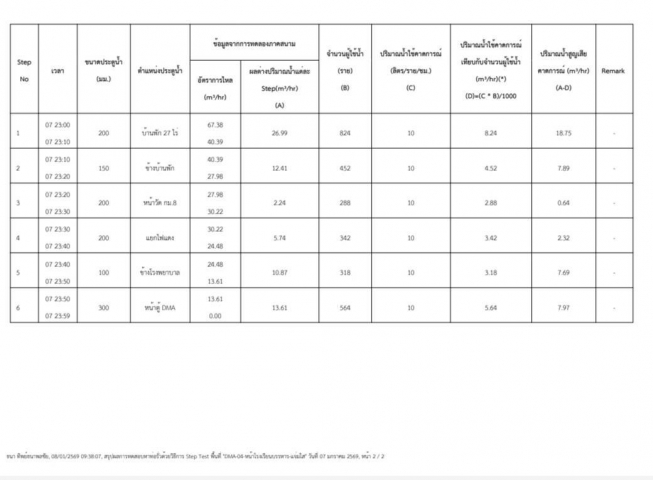 กปภ.สาขาด่านช้าง ลงพื้นที่ ทำ Step Test and Zero Test นายพรสุพรรณ ใจบุญ ผจก.กปภ.สาขาด่านช้าง มอบหมายนายธนา ทิพย์ธนาพลชัย หัวหน้างานบริการฯ และพนักงานในสังกัด ลงพื้นที่ทำ Step Test and Zero Test โดยค้นหาจุดแตกรั่วของท่อประปา ด้วยวิธีการแบ่งเป็นพื้นที่ย่อย ทำการสำรวจหาท่อแตกรั่วในพื้นที่ที่มีน้ำสูญเสียทั้งบนดินและใต้ดิน โดยใช้เครื่องมือสำรวจหาจุดท่อแตกรั่ว ตรวจสอบการใช้งานท่อ อุปกรณ์และประตูน้ำในระบบจ่ายน้ำประปา รวมทั้งทดสอบแรงดันน้ำ และดำเนินการซ่อมจุดแตกรั่วบริเวณนั้นต่อไป เพื่อบำรุงรักษาระบบให้สามารถใช้งานได้อย่างมีประสิทธิภาพ ในวันพุธ ที่ 7 มกราคม 2569 เวลา 23.00 น. ถึง วันพฤหัสบดี ที่ 8 มกราคม 2569 เวลา 01.00 น. บริเวณ DMA 04 หน้าโรงเรียนบรรหาร-แจ่มใส ซึ่งอยู่ในพื้นที่ตำบลด่านช้าง ทั้งนี้ การทำ Step Test and Zero Test เป็นมาตรการสำคัญในการลดการสูญเสียน้ำประปา ทาง กปภ.สาขาด่านช้าง ให้ความสำคัญกับการบำรุงรักษาระบบจ่ายน้ำประปาอย่างต่อเนื่อง เพื่อให้บริการน้ำประปาที่สะอาด มีคุณภาพ และเพียงพอต่อความต้องการใช้ของประชาชน มุ่ง-มั่น-เพื่อปวงชน-สู่ความยั่งยืน