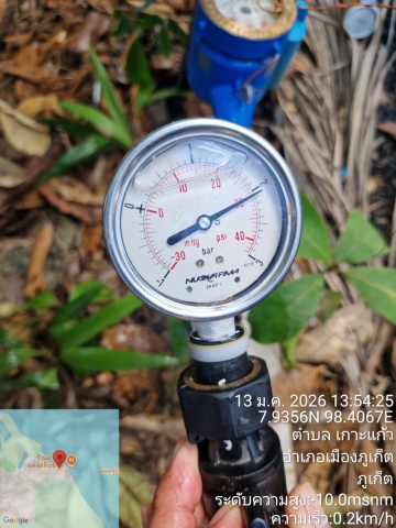 วันอังคารที่ 13 มกราคม 2569 การประปาส่วนภูมิภาคสาขาภูเก็ต ภายใต้การบริหารของนางนุชนภา พิณทอง ผู้จัดการการประปาส่วนภูมิภาคสาขาภูเก็ต มอบหมายให้ งานบริการและควบคุมน้ำสูญเสีย 2 นำทีมลงพื้นที่่ตรวจวัดแรงดันน้ำหน้ามาตร บริเวณหมู่บ้านแหลมหิน ต.เกาะแก้ว อ.เมือง จ.ภูเก็ต เพื่อตรวจวัดแรงดันน้ำที่เหมาะสมตามมาตรฐานการให้บริการของ กปภ. ผลการตรวจสอบพบว่าเฉลี่ยอยู่ที่ 2.0 Bar ซึ่งสอดคล้องกับการดำเนินงานตามมาตรฐานที่ กปภ.กำหนด (0.50 Bar) อีกทั้งเป็นโอกาสอันดีในการพบปะผู้ใช้น้ำ ร่วมพุดคุยรับฟังความคิดเห็นและข้อเสนอแนะ เพื่อนำมาปรับปรุงบริการให้ดียิ่งขึ้น สร้างความเชื่อมั่นและความพึงพอใจแก่ผู้ใช้น้ำในพื้นที่