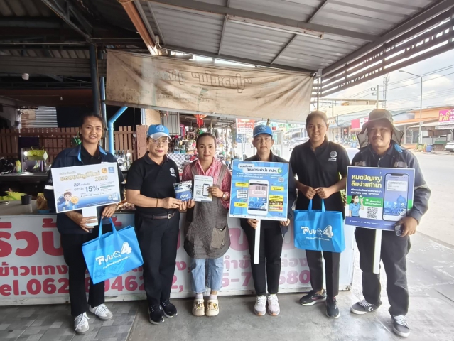 วันศุกร์ ที่ 23 มกราคม 2569 กปภ.สาขาหลังสวน นำโดย นายอนุเทพ แดงบุญ ผู้จัดการการประปาส่วนภูมิภาคสาขาหลังสวน พร้อมหัวหน้างาน และพนักงานในสังกัด ลงพื้นที่พบปะลูกค้าโครงการมุ่งมั่นเพื่อปวงชนเติมใจให้กัน ณ ตลาดนัดเพชรศรี สี่แยกเขาปีบ ต.ทุ่งตะไคร อ.ทุ่งตะโก จ.ชุมพร เพื่อพูดคุย สอบถามปัญหาการใช้น้ำ แนะนำการใช้ PWA LINE OFFICIAL Add Friend "@pwathailand" แอพ PWA Plus Life+และประชาสัมพันธ์โครงการลดค่าติดตั้งประปาใหม่ 15% ระยะเวลา 2 เดือน (มกราคม-กุมภาพันธ์ 2569) เป็นหนึ่งในของขวัญปีใหม่ 2569 ที่ กปภ. ตั้งใจมอบให้แก่ลูกค้าประชาชน เพื่อช่วยลดภาระค่าใช้จ่ายในครัวเรือน พร้อมให้คำแนะนำเกี่ยวกับขั้นตอน เอกสาร และสิทธิประโยชน์ต่าง ๆ ในการใช้น้ำประปาอย่างถูกต้องและมีประสิทธิภาพ