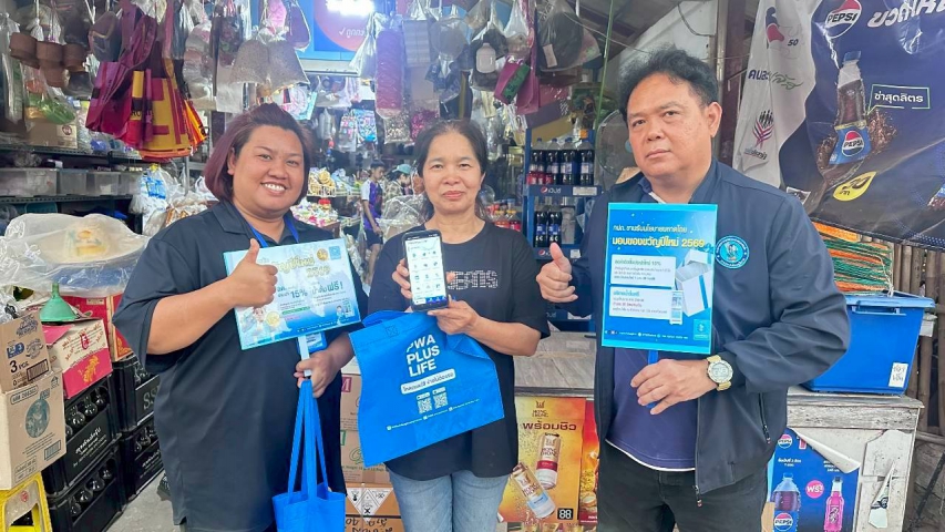 และประชาสัมพันธ์ช่องทางการชำระออนไลน์ PWA Plus Life พร้อมมอบของที่ระลึกให้แก่ประชาชนที่ร่วมกิจกรรม