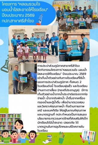 การประปาส่วนภูมิภาคสาขาศรีสำโรง จัดกิจกรรมโครงการ"หลอมรวมใจ มอบน้ำใสสะอาดให้โรงเรียน" ปีงบประมาณ 2569