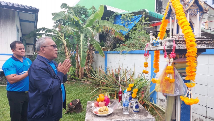 นายจีรศักดิ์ หัถชีพ ผู้จัดการ กปภ.สาขาระนอง นายทินกร บุญญานุพันธ์ ผู้ช่วยผู้จัดการฯ พร้อมด้วยหัวหน้างาน พนักงานและลูกจ้างในสังกัด จัดพิธีสักการะบูชาและถวายเครื่องสักการะแก่พระแม่ธรณีวิสุทธิสรรพสักขีบารมีธำรงชล ศาลพระภูมิชัยมงคล พระภูมิเจ้าที่ เพื่อเป็นสิริมงคลสร้างขวัญและกำลังใจให้แก่พนักงาน เนื่องในวาระครบรอบ 47 ปี แห่งการสถาปนา การประปาส่วนภูมิภาค ณ สำนักงานการประปาส่วนภูมิภาคสาขาระนอง เมื่อวันที่ 19 กุมภาพันธ์ 2569
