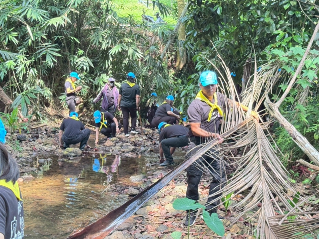 จิตอาสาพระราชทาน ณ ฝายชะลอน้ำ บ้านวังพรหม หมู่ที่ 7 ตำบลหาดยาย อำเภอหลังสวน จังหวัดชุมพร