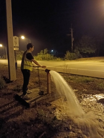 วันพฤหัสบดีที่ 19 กุมภาพันธ์ 2569 นำโดย นายณรงค์ชัย จงดี ผจก.กปภ.สาขาบางสะพาน พร้อมด้วย นายสมโภชน์ ใหม่ทอง หัวหน้างาน 8 งานบริการ และพนักงานในสังกัด จัดกิจกรรม Step Test โดยพร้อมเพรียงกัน ลงพื้นที่ค้นหาท่อแตก/รั่ว บริเวณพื้นที่ MM02 สถานีจ่ายน้ำช้างแรก (จ่ายช้างแรก) ตั้งแต่เวลา 21.00 น. เป็นต้นไป ทั้งนี้เพื่อบริหารจัดการน้ำสูญเสียและให้บริการน้ำประปาอย่างเต็มประสิทธิภาพตามมาตรฐานของ กปภ. การดำเนินการนี้เป็นส่วนหนึ่งของภารกิจสำคัญของ กปภ. และยกระดับคุณภาพการให้บริการน้ำประปาให้แก่ลูกค้าในพื้นที่อย่างต่อเนื่องและยั่งยืน