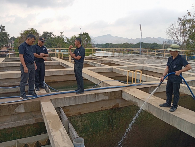วันที่ 18 กุมภาพันธ์ 2569 นายอธิวิศน์ เกิดภาณุพัฒน์ ผู้จัดการการประปาส่วนภูมิภาคสาขากาญจนบุรี พร้อมด้วยนายณรงค์ศักดิ์ แก้วเขียว ผู้ช่วยผู้จัดการ, นายโยธิน พลเรือง หัวหน้างานผลิต และเจ้าหน้าที่งานผลิต กปภ.สาขากาญจนบุรี ได้ร่วมทำกิจกรรมล้างถังตกตะกอน โรงกรองน้ำขนาด 600 ลบ.ม./ชม. สถานีผลิตน้ำแม่ข่ายกาญจนบุรี, เพื่อเป็นการดูแล, บำรุงรักษาระบบผลิตน้ำ, รักษาความสะอาดพื้นที่ทำงาน อันก่อให้เกิดประสิทธิภาพในการทำงาน, สร้างนิสัย และสุขภาพที่ดีของผู้ปฏิบัติงาน