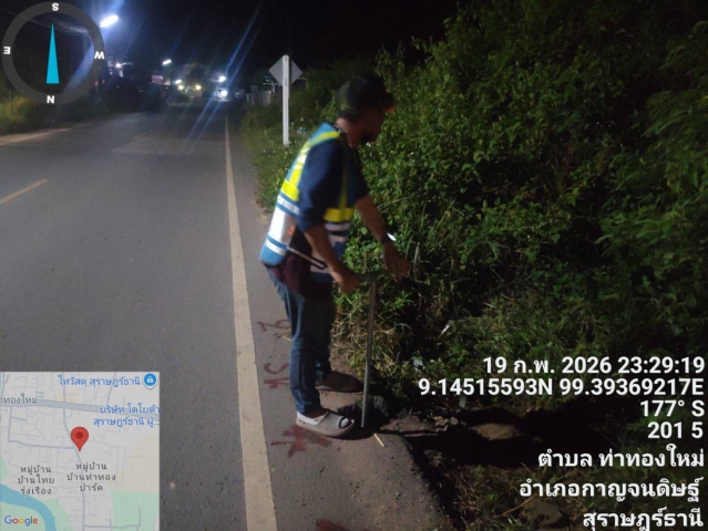 วันพฤหัสบดีที่ 19 กุมภาพันธ์ 2569 กปภ.สาขากาญจนดิษฐ์ ภายใต้การบริหารงานโดย นายสานิษ กาญจนกุล ผู้จัดการการประปาส่วนภูมิภาคสาขากาญจนดิษฐ์ มอบหมายพนักงานในสังกัด ลงพื้นที่สำรวจเพื่อค้นหาท่อแตก-รั่ว โดยวิธี Step test ในพื้นที่ DMA - 01 - 02 บริเวณสี่แยกไฟแดงท่าทองใหม่ ต.ท่าทองใหม่ อ.กาญจนดิษฐ์ จ.สุราษฎร์ธานี ตามแผนปฏิบัติการลดน้ำสูญเสีย