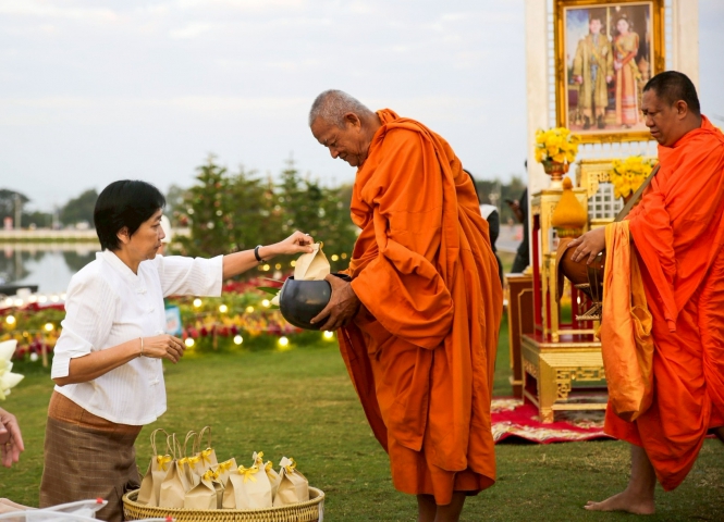 #กิจกรรมปูเสื่อนั่งสาดตักบาตรรับอรุณเสริมบุญที่บึงสีไฟ