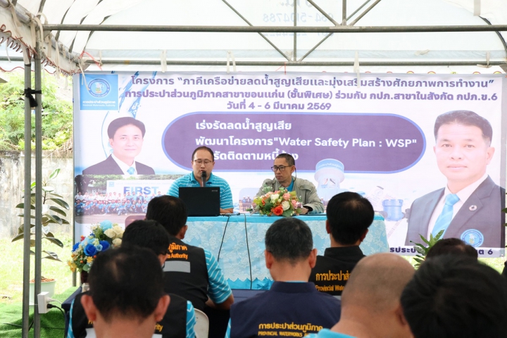 นายกมล ศรีวงษ์ รองผู้ว่าการ (ปฏิบัติการ 2) เป็นประธานสรุปผลการดำเนินโครงการภาคีเครือข่ายลดน้ำสูญเสียและมุ่งเสริมสร้างศักยภาพการทำงาน โดยมี นายสมพร นันตะ ผู้อำนวยการการประปาส่วนภูมิภาคเขต 6 พร้อมด้วย นายเกียรติศักดิ์ ศรีตุ้ยเลิง ผู้ช่วยผู้อำนวยการการประปาส่วนภูมิภาคเขต 6 (วิชาการ) นางสาวมนทกานติ์ คมขาว ผู้ช่วยผู้อำนวยการการประปาส่วนภูมิภาคเขต 6 (บริหาร) ตลอดจนคณะผู้บริหารในสังกัด หัวหน้างาน และทีมงานจาก กปภ.สาขาในสังกัดทั้ง 22 สาขา (4 กลุ่มภาคีเครือข่าย) เข้าร่วมประชุมฯ โดยแต่ละกลุ่มได้นำเสนอข้อมูลรายงานผลการปฏิบัติงานจากการลงพื้นที่ปฏิบัติงานจริงระหว่างการดำเนินงานในห้วงระยะเวลา 3 วัน ตั้งแต่วันที่ 4-6 มีนาคม 2569 เพื่อสรุปข้อมูลที่พบ ตลอดจนเปิดพื้นที่แลกเปลี่ยนข้อมูล สู่การเสนอแนะแนวทางการแก้ไขปัญหา พร้อมวางแผนการดำเนินงานที่มีประสิทธิภาพอย่างยั่งยืน มุ่งเป้าหมายให้ลูกค้าในพื้นที่รับบริการของ กปภ.สาขาขอนแก่น (พ) ได้มีน้ำประปาสำหรับใช้ในการอุปโภคและบริโภคอย่างเพียงพอ โดยจัดการประชุมฯ ณ สถานีผลิตน้ำหนองแวง กปภ.สาขาขอนแก่น (พ) เมื่อวันที่ 6 มีนาคม 2569