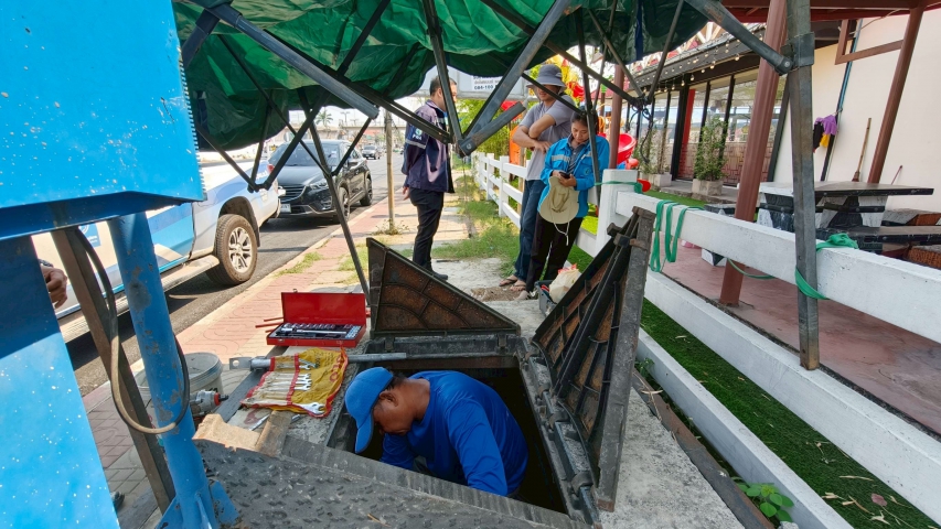 การประปาส่วนภูมิภาคสาขาอ้อมน้อย โดยนายสุธี แสงเจือ ผจก.กปภ.สาขาอ้อมน้อย มอบหมายให้นายนพพล วัฒนสืบสิน ผช.ผจก. หัวหน้างานบริการฯ 1, 2 และพนักงานในสังกัด ดำเนินการถอดล้างหัว PRV (Pressure Reducing Valve) ขนาด 300 มม. DMA12 บริเวณโรงงานผ้าขนหนู ตามแผนงานบำรุงรักษาป้องกันเชิงรุก ซึ่งหัว PRV เปรียบเสมือนวาล์วควบคุมแรงดันน้ำ ทำหน้าที่ลดแรงดันน้ำให้อยู่ในระดับที่เหมาะสม เพิ่มประสิทธิภาพการจ่ายน้ำได้อย่างสม่ำเสมอ ป้องกันไม่ให้ท่อประปาแตกเสียหาย และช่วยลดโอกาสเกิดน้ำสูญเสียได้มากยิ่งขึ้น
