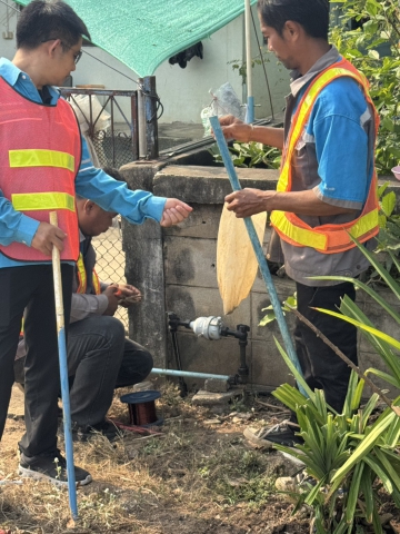 งานบริการฯ ดำเนินการ ALC ค้นหาท่อแตกเชิงรุกและดำเนินการตรวจสอบมาตรวัดน้ำและผูกลวดตีตรามาตรพื้นที่ DMA01-2 บริเวณ หลังโรงเรียนวัฒนานคร ผลการดำเนินการ พบท่อ PB 50 รั่ว จำนวน 1 จุด ทั้งนี้งานบริการฯ จักทำการเร่งรัดงานซ่อมและ ตรวจสอบมาตรเชิงพาณิชย์ และค้นหาท่อแตก/รั่ว เชิงรุก เป็นประจำ ต่อไป
