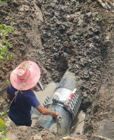 วันที่ 18 มีนาคม 2569 การประปาส่วนภูมิภาคสาขาฉะเชิงเทราโดย นายฉัตรชัย รุ่นประพันธ์ ผู้ช่วยผู้จัดการ นายธนชนัญ สิทธิเวช หัวหน้างานบริการและควบคุมน้ำสูญเสียร่วมกับ บริษัทประปาฉะเชิงเทรา จำกัด ได้ดำเนินการเฝ้าระวังและสำรวจท่อแตกรั่วเชิงรุกในพื้นที่จ่ายน้ำอย่างต่อเนื่อง จากการลงพื้นที่ตรวจสอบบริเวณ MM-06 สถานีผลิตน้ำสวนสน จ่ายลงถังสถานีจ่ายน้ำในเมือง Z2 (M10) การตรวจสอบพบ ท่อ PE ขนาด 500 มม. แตกรั่ว จำนวน 1 จุด เจ้าหน้าที่ได้เร่งดำเนินการซ่อมแซมโดยทันที ขณะนี้การซ่อมแซมแล้วเสร็จเรียบร้อย ระบบจ่ายน้ำกลับสู่ภาวะปกติ การประปาส่วนภูมิภาคสาขาฉะเชิงเทรา ยังคงมุ่งมั่นดำเนินงานเชิงรุก เพื่อลดน้ำสูญเสีย และสร้างความมั่นใจในคุณภาพและความต่อเนื่องของการให้บริการแก่ประชาชนอย่างเต็มประสิทธิภาพ