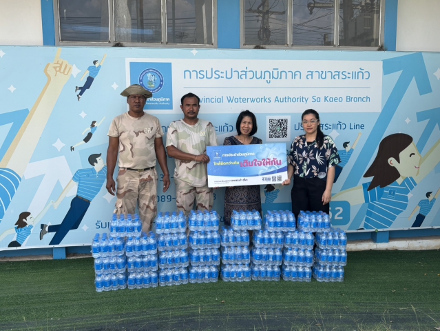 กปภ.สาขาสระแก้ว ร่วมสนับสนุนน้ำดื่มบรรจุขวดตราสัญลักษณ์กปภ. ให้แก่ ที่ว่าการอำเภอเมืองสระแก้ว เพื่อใช้ในการจัดตั้งจุดบริการประชาชนพื้นที่อำเภอเมืองสระแก้ว เพื่อป้องกันและแก้ไขปัญหาอุบัติเหตุทางถนนในช่วงเทศกาลสงกรานต์ พ.ศ.2569 จำนวน 360 ขวด