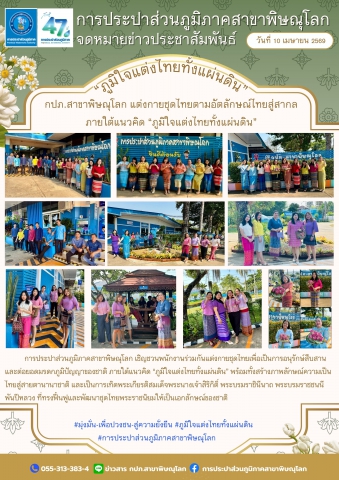 วันศุกร์ที่ 10 เมษายน 2569 นำโดยนางสาวนงนาฎ เนียมสกุล ผู้จัดการการประปาส่วนภูมิภาคสาขาพิษณุโลก พร้อมด้วย นายธนาภัทร์ พึ่งกริม ผู้ช่วยผู้จัดการฯ หัวหน้างานและพนักงานในสังกัด ร่วมกันแต่งกายชุดไทยเพื่อเป็นการอนุรักษ์สืบสานและต่อยอดมรดกภูมิปัญญาของชาติ พร้อมทั้งสร้างภาพลักษณ์ความเป็นไทยสู่สายตานานาชาติ และเป็นการเทิดพระเกียรติสมเด็จพระนางเจ้าสิริกิติ์ พระบรมราชินีนาถ พระบรมราชชนนีพันปีหลวง ที่ทรงฟื้นฟูและพัฒนาชุดไทยพระราชนิยมให้เป็นเอกลักษณ์ของชาติ ณ การประปาส่วนภูมิภาคสาขาพิษณุโลก ต.วังทอง อ.วังทอง จ.พิษณุโลก