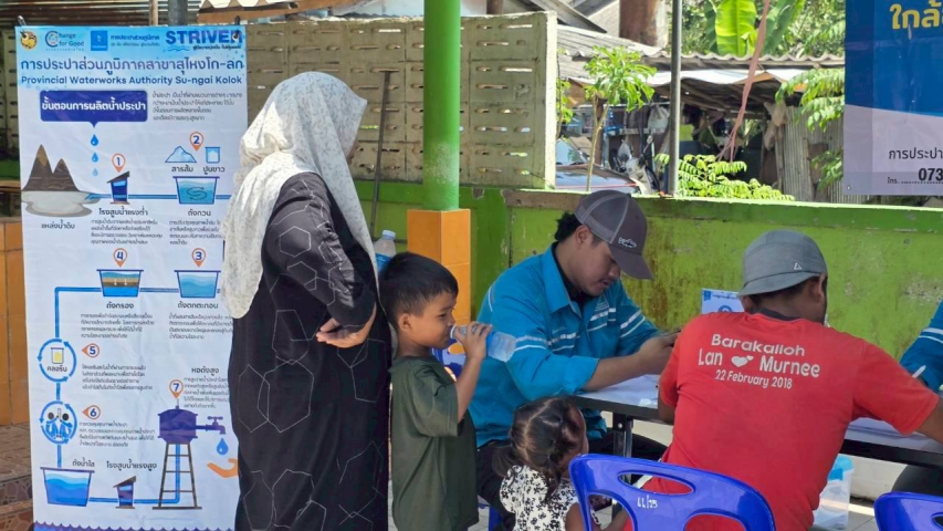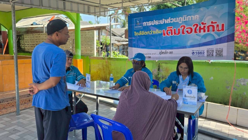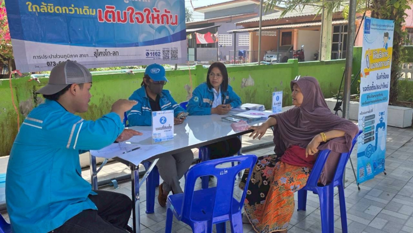 เมื่อวันศุกร์ที่ 10 เมษายน 2569 เวลา 09.30 – 11.30 น. นายคมสิทธิ์ บริบูรณ์ ผู้จัดการการประปาส่วนภูมิภาคสาขาสุไหงโก-ลก มอบหมายให้ นางนิตยา เทพบัวแก้ว หัวหน้างานอำนวยการ พร้อมด้วยทีมงานในสังกัด ลงพื้นที่พบปะประชาชน ณ บ้านท่าแพรก หมู่ที่ 6 ตำบลเจ๊ะเห อำเภอตากใบ จังหวัดนราธิวาส เพื่อให้บริการรับคำร้องขอติดตั้งประปาใหม่แบบเบ็ดเสร็จในจุดเดียว