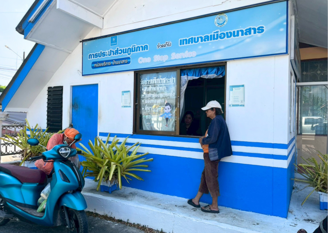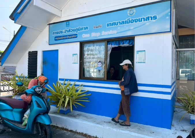 การประปาส่วนภูมิภาคสาขาเวียงสระ มอบหมายให้พนักงานในสังกัดงานอำนวยการ ออกพื้นที่ให้บริการลูกค้ารับชำระค่าน้ำประปาและขอติดตั้งมิเตอร์ประปา ณ หน่วยบริการ One Stop Service เทศบาลเมืองนาสาร ต.นาสาร อ.บ้านนาสาร จ.สุราษฎร์ธานี ประจำเดือนเมษายน 2569 ในวันพฤหัสบดีที่ 16 เมษายน 2569 โดยกปภ.สาขาเวียงสระ ได้ให้บริการทุกวันที่ 15 และ 18 ของเดือน (หากวันดังกล่าวตรงกับวันหยุด ให้เลื่อนเป็นวันทำการถัดไป) ตั้งแต่เวลา 09.00 - 15.00 น. การให้บริการรับชำระค่าน้ำนอกสถานที่ของกปภ.สาขาเวียงสระ ช่วยลดความยุ่งยากและประหยัดเวลาให้กับลูกค้าในพื้นที่ ไม่ต้องเดินทางมาชำระค่าน้ำที่สำนักงาน เกิดความคล่องตัว สะดวกสบายยิ่งขึ้น สร้างความพึงพอใจให้กับลูกค้าเป็นอย่างยิ่ง อีกทั้งได้แนะนำใหลูกค้าชำระค่าน้ำผ่านออนไลน์ PWA Line Official ให้กับลูกค้าที่สะดวกในการชำระเงินและช่องทางการติดต่อกปภ.ผ่านระบบออนไลน์ เป็นการอำนวยความสะดวกให้กับลูกค้าได้เป็นอย่างดี