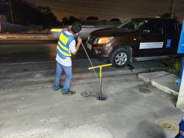 การประปาส่วนภูมิภาคสาขาอ้อมน้อย โดยนายสุธี แสงเจือ ผจก.กปภ.สาขาอ้อมน้อย พร้อมด้วยหัวหน้างานบริการฯ 1 และพนักงานในสังกัด ร่วมกับผู้รับจ้างค้นหาท่อแตกรั่ว (ALC) ลงพื้นที่ทำ Step Test and Zero Test ค้นหาจุดแตกรั่วในพื้นที่ DMA01 บริเวณคลองโยง, DMA21 บริเวณข้างไทยวัสดุ, DMA23 บริเวณคลองสามบาท, DMA24 บริเวณข้างศูนย์โตโยต้า (ถนนบรมฯ) พื้นที่ตำบลคลองโยง ตำบลศาลายา ตำบลมหาสวัสดิ์ และตำบลบางเตย เพื่อค้นหาปริมาณน้ำสูญเสียที่เกิดขึ้นให้เป็นไปตามเป้าหมายต่อไป
