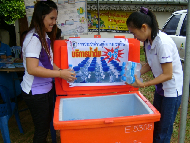 ในกิจกรรมอำเภอยิ้ม...เคลื่อนที่ในครั้งนี้ การประปาส่วนภูมิภาคสาขาเถิน ได้ให้บริการ อาทิ แจกแผ่นพับ พร้อมนำน้ำประปาดื่มได้บรรจุขวดแจกแก่ผู้ร่วมกิจกรรมในครั้งนี้ เมื่อวันที่ 16 พฤษภาคม 2555 เวลา 09.00 น. นายนพดล ปั้นรัตน์ ผจก.กปภ.สาขาเถิน พร้อมด้วย นายมนัส เนียมสกุล หน.งานผลิต นายทิวา ระดีรมย์ หน.งานบริการและควบคุมน้ำสูญเสีย นางนพวรรณ เตชะวณิช หน.งานอำนวยการ พร้อมด้วยพนักงาน ลูกจ้างร่วมกับที่ว่าการอำเภอเถิน ส่วนราชการ รัฐวิสาหกิจ ธนาคาร ร้านค้า ในพื้นที่อำเภอเถินออกให้บริการลูกค้า กปภ. และประชาชนในพื้นที่บ้านปางกุ่มอ.เถิน จ.ลำปาง ซึ่งกิจกรรมอำเภอยิ้ม...เคลื่อนที่ ในครั้งนี้มีวัตถุประสงค์เพื่อเป็นการเสริมสร้างการให้บริการเชิงรุกสู่ลูกค้าประชาชน ในลักษณะหน่วยบริการเคลื่อนที่ในระดับอำเภอ เป็นการเพิ่มช่องทาง ในการเข้าถึงงานบริการภาครัฐได้สะดวกยิ่งขึ้น และลดค่าใช้จ่ายในการเดินทางติดต่อหน่วยงานภาครัฐ และทำให้หน่วยงานภาครัฐรับทราบปัญหาและสามารถแก้ไขได้ทันท่วงที
