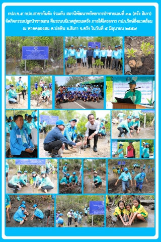 การประปาส่วนภูมิภาคเขต ๕ การประปาส่วนภูมิภาคสาขากันตัง ร่วมกับสถานีพัฒนาทรัพยากรป่าชายเลนที่ ๓๑ (ตรัง สิเกา) จัดกิจกรรมปลูกป่าชายเลน ในโครงการ กปภ.รักษ์สิ่งแวดล้อม ในวันที่ ๕ มิถุนายน ๒๕๕๗ ณ หาดคลองสน บ้านพรุจูด ต.บ่อหิน อ.สิเกา จ.ตรัง เพื่อคืนระบบนิเวศสู่ทะเลตรัง อีกทั้งเพื่อสนับสนุนให้พนักงานในองค์กร ชุมชน ตลอดจนนักเรียนนักศึกษา ได้มีส่วนร่วมในการช่วยกันรักษาระบบนิเวศป่าชายเลนให้อุดมสมบูรณ์สืบไป โดยมีนายบุญยก คงกิจ ผู้อำนวยการการประปาส่วนภูมิภาคเขต ๕ เป็นประธานเปิดงาน นอกจากนี้ยังได้รับเกียรติจากนายสาธร นราวิสุทธิ์ รองผู้ว่าราชการจังหวัดตรัง นายนันธวัช เจริญวรรณ นายอำเภอสิเกา ร่วมเปิดงาน สำหรับกิจกรรมปลูกป่าชายเลนในครั้งนี้ กปภ. ได้รับความอนุเคราะห์กล้าไม้จากสถานีพัฒนาทรัพยากรป่าชายเลนที่ ๓๑ (ตรัง สิเกา) จำนวน ๔๐๐ ต้น เพื่อใช้เพาะปลูกบนพื้นที่จำนวน ๒ ไร่ โดยได้รับความร่วมมือร่วมใจจากพนักงาน กปภ. หน่วยงาน ประชาชนในพื้นที่ และนักเรียนนักศึกษา ราว ๒๐๐ คน