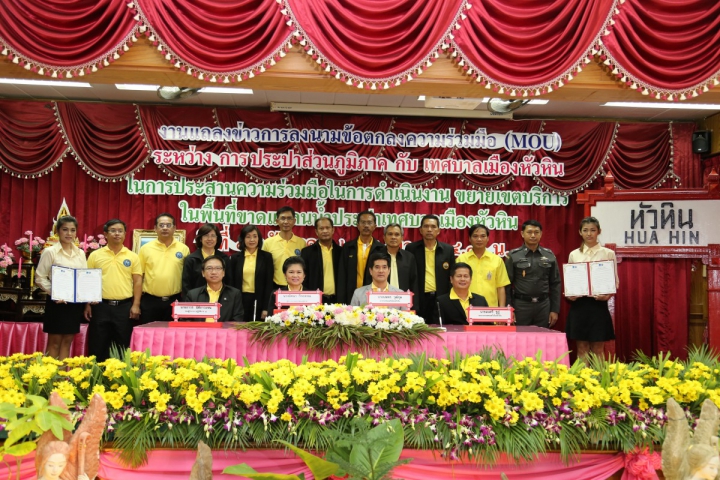 การประปาส่วนภูมิภาค (กปภ.) ร่วมลงนามบันทึกข้อตกลงกับ เทศบาลเมืองหัวหิน ในการประสานความร่วมมือขยายเขตบริการในพื้นที่ขาดแคลนน้ำประปาเทศบาลเมืองหัวหิน เพื่อคืนความสุขและลดความเหลื่อมล้ำให้แก่ประชาชนในพื้นที่ที่ขาดแคลนให้ได้มีน้ำประปาใช้อย่างทั่วถึง ตลอดจนพัฒนาคุณภาพชีวิตให้ดีขึ้น ในวันที่ ๑๙ ธันวาคม ๒๕๕๗ ณ ห้องประชุมโรงเรียนเทศบาลเขาพิทักษ์ (สันติ ภิรมย์ภักดีอุปถัมภ์) อ.หัวหิน จ.ประจวบคีรีขันธ์