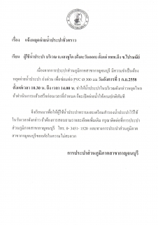 เรียน ผู้ใช้น้ำบริเวณ ถ.แสงชูโต(ฝั่งตะวันออก) ตั้งแต่ ททท.ถึงซอยไปรษณีย์