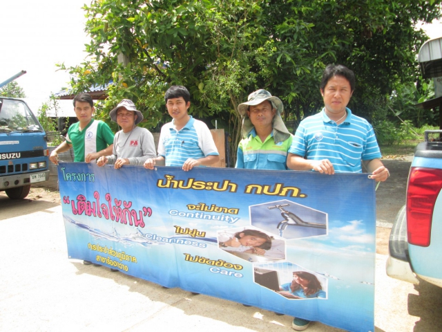 เมื่อวันที่ 7 กันยายน 2558 การประปาส่วนภูมิภาคสาขาร้องกวาง โดย นายอัมรินทร์ สิทธิเกษร ผู้จัดการการประปา มอบหมายให้นายนราพงษ์ มหาศรานนท์ นายช่างโยธา 6 รักษาการแทนหัวหน้างาน 7 งานบริการฯ และพนักงาน ในสังกัด ออกโครงการเติมใจให้กัน ครั้งที่ 4/2558 ที่บ้านกลางทุ่ง ม.10 ต.บ้านกลาง อ.สอง จ.แพร่ โดยให้บริการแนะนำเรื่องการใช้น้ำ การชำระค่าน้ำประปา เพื่อป้องกันปัญหาเรื่องการถูกระงับใช้น้ำประปา และทำการซ่อมท่อ