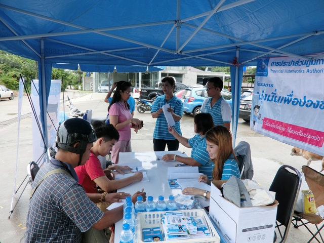 นายอานุภาพ วัฒนสมบูรณ์ ผู้จัดการการประปาส่วนภูมิภาคสาขาสันกำแพง พร้อมด้วย หัวหน้างาน และพนักงานในสังกัดจัดกิจกรรมมุ่งมั่นเพื่อปวงชน ครั้งที่ 4/2559 เมื่อวันเสาร์ ที่ 20 สิงหาคม 2559 ณ หมู่บ้านธารทิพย์ ต.สันกลาง อ.สันกำแพง จ.เชียงใหม่ เพื่อพบปะกับประชาชนในเขตพื้นที่หมู่บ้าน โดยในกิจกรรมดังกล่าว ได้มีการรับคำร้องขอติดตั้งน้ำประปา จำนวน 32 ราย ให้ข้อมูลความรู้เกี่ยวกับการใช้น้ำประปา วิธีการประหยัดน้ำ พร้อมรับฟังเสียงของลูกค้าเพื่อนำมาปรับปรุงการบริการให้มีประสิทธิภาพมากยิ่งขึ้น และมอบน้ำดื่มบรรจุขวดตราสัญลักษณ์ จำนวน 200 ขวด ซึ่งการออกพบประชาชนในครั้งนี้สร้างความประทับใจแก่ผู้ใช้น้ำเป็นอย่างยิ่ง