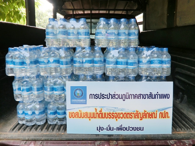 เมื่อวันศุกร์ที่ 23 กันยายน 2559 เวลา 10.00 น การประปาส่วนภูมิภาคสาขาสันกำแพง โดยนายอานุภาพ วัฒนสมบูรณ์ ผู้จัดการการประปาส่วนภูมิภาคสาขาสันกำแพง มอบหมายให้ นางเพลินพิศ กันธะเรียน พนักงานการเงินและบัญชี 6 มอบน้ำดื่มบรรจุขวด ตราสัญลักษณ์ กปภ. จำนวน 200 ขวด ให้แก่วัดปูคาเหนือ ต.แม่ปูคา อ.สันกำแพง จ.เชียงใหม่ เพื่อร่วมในงานถวายทานสลากภัตต์ประจำปี 2559 ในวันอาทิตย์ ที่ 25 กันยายน 2559 ณ วัดปูคาเหนือ
