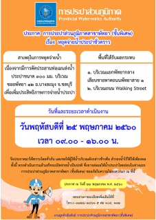 จึงประกาศมาให้ทราบโดยทั่วกัน และขอให้ผู้ใช้น้ำบริเวณดังกล่าวข้างต้น สำรองน้ำไว้ใช้ให้เพียงพอ ทั้งนี้ หากดำเนินการแล้วเสร็จจะเปิดจ่ายน้ำเป็นปกติ ซึ่งอาจส่งผลให้น้ำประปาไหลอ่อนในช่วงแรก หากท่านมีข้อสงสัยประการใด โปรดติดต่อการประปาส่วนภูมิภาคสาขาพัทยา (ชั้นพิเศษ) โทร.๐-๓๘๒๒-๒๔๖๑-๕ ต่อ ๑๐๔, ๑๓๒