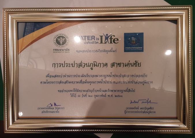 1. รางวัล "Water is Life" จากกรมอนามัย และ กปภ.