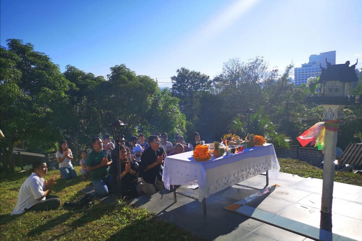 จากนั้นได้มีการนิมนต์พระสงฆ์จำนวน 5 รูป มาทำพิธีเจริญพระพุทธมนต์ และร่วมกันถวายภัตตาหารเพลแด่พระภิกษุสงฑ์