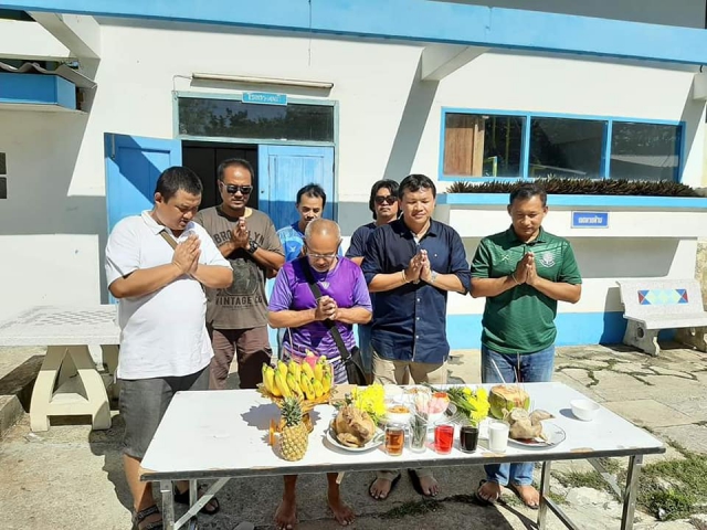โดยในช่วงเช้ามีพิธีไหว้ศาลพระภูมิเจ้าที่บริเวณบ้านพักพนักงาน สถานีผลิตน้ำเบตง, สถานีผลิตน้ำมหามงคล