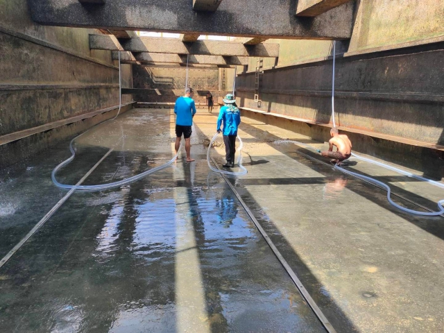 วันที่ 11 มกราคม 2565 การประปาส่วนภูมิภาค สาขาจันทบุรี นำโดย นายจิรพงค์ แสวงการ ผู้จัดการการประปาส่วนภูมิภาคสาขาจันทบุรี มอบหมายให้ นายประสิทธิ์ เจริญวงษ์ หัวหน้างานผลิต พร้อมด้วยพนักงานและลูกจ้างในสังกัด ร่วมกันล้างทำความสะอาดถังตกตะกอน โรงกรองน้ำขนาด 1,000 ลูกบาศก์เมตร/ชั่วโมง ณ สถานีผลิตน้ำปากแซง ตามแผนโครงการจัดการน้ำสะอาด (Water Safety Plan) ตลอดจนสร้างความเชื่อมั่นให้แก่ลูกค้าผู้ใช้น้ำ ในการให้บริการน้ำประปาที่สะอาดและได้มาตรฐานของ กปภ.
