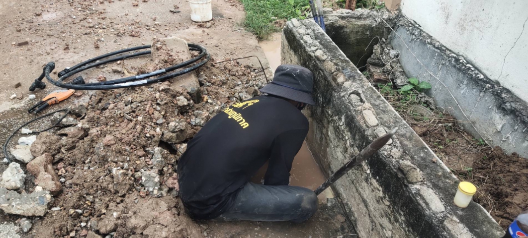 หลังได้รับแจ้งผ่านแอปพลิเคชั่นไลน์กลุ่มประปาให้ตรวจสอบน้ำไหลอ่อน ณ บ้านเลขที่ 295/36 ม.6 ต.สระแก้ว อ.เมือง จ.กำแพงเพชร จึงได้ส่งมิสเตอร์ประปาตรวจสอบพร้อมแก้ไขปัญหาทันใจ พบว่า ท่อ PB ขนาด 20 มม.ขาดใต้ผนังกระถางต้นไม้ จึงได้ดำเนินการให้ผู้รับจ้างขุดเจาะคอนกรีตเพื่อซ่อมท่อ PB ขนาด 20 มม.ที่ขาดและซ่อมทันที