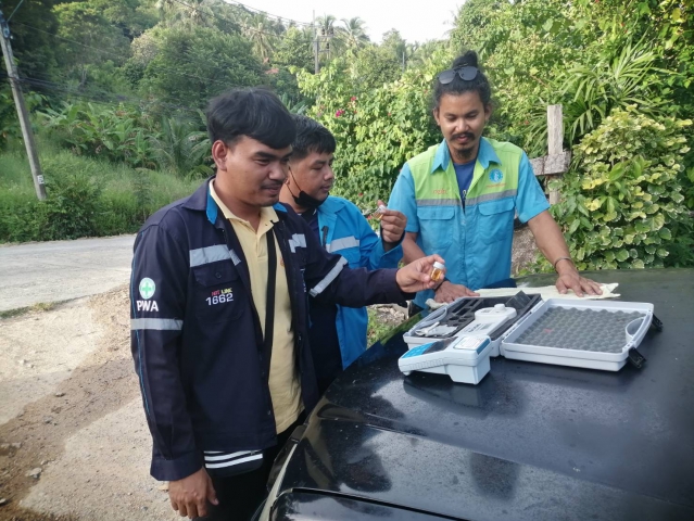 กปภ.สาขาเกาะพะงัน ภายใต้การบริหารงานโดยนายสมพงศ์ ณ นคร ผู้จัดการ กปภ.สาขาเกาะพะงัน งานผลิต ลงพื้นที่ตรวจวัดค่าคลอรีนปลายท่อ ณ ชุมชนบ้านท้องนายปาน ม.5 ต.บ้านใต้ อ.เกาะพะงัน จ.สุราษฎร์ธานี เพื่อสร้างความมั่นใจในคุณภาพของน้ำประปา และเป็นการรักษาค่ามาตรฐานตามที่กำหนด