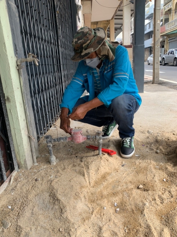 วันพฤหัสบดีที่ 25 สิงหาคม 2565 กปภ.สาขากาญจนบุรี นำโดย นางราตรี อักษรอินทร์ ผจก.กปภ.สาขากาญจนบุรี พร้อมด้วยทีมงานบริการฯ ทีมงานอำนวยการ ทีมงานจัดเก็บรายได้ และทีมงานผลิต ออกหน่วย มุ่ง มั่น เพื่อปวงชน เติมใจให้กันครั้งที่ 4/2565 บริเวณ ตลาดสดเทศบาล(ตลาดสายหยุด) ถึง ถนนปากแพรก พร้อมให้บริการดูแลซ่อมแซมระบบประปาภายในบ้านโดยไม่คิดค่าแรง และประชาสัมพันธ์แนะนำการลงทะเบียนชำระค่าน้ำออนไลน์ ผ่านช่องทาง Line @pwathailand เพื่ออำนวยความสะดวกให้แก่ลูกค้าพร้อมทั้งมอบของที่ระลึก เป็นการป้องกันการติดเชื้อไวรัสโควิด-19