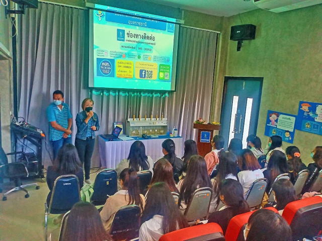 ตอบข้อซักถามต่างๆ ในแต่ละขั้นตอนอย่างละเอียด ซึ่งได้รับความสนใจจากอาจารย์และนักศึกษาเป็นอย่างมาก ณ กปภ.สาขาอุบลราชธานี