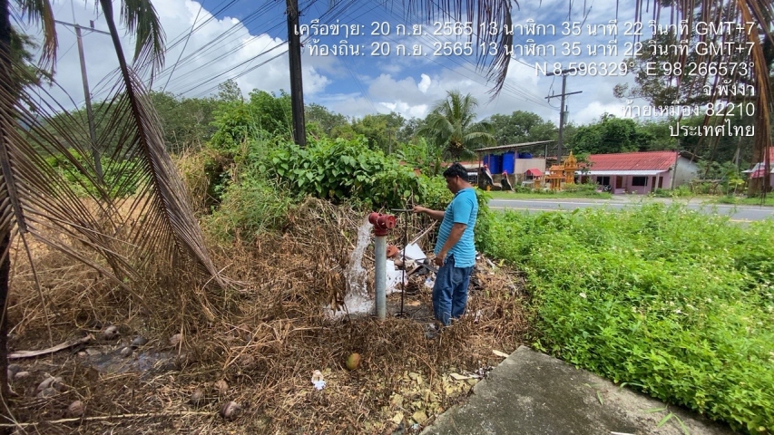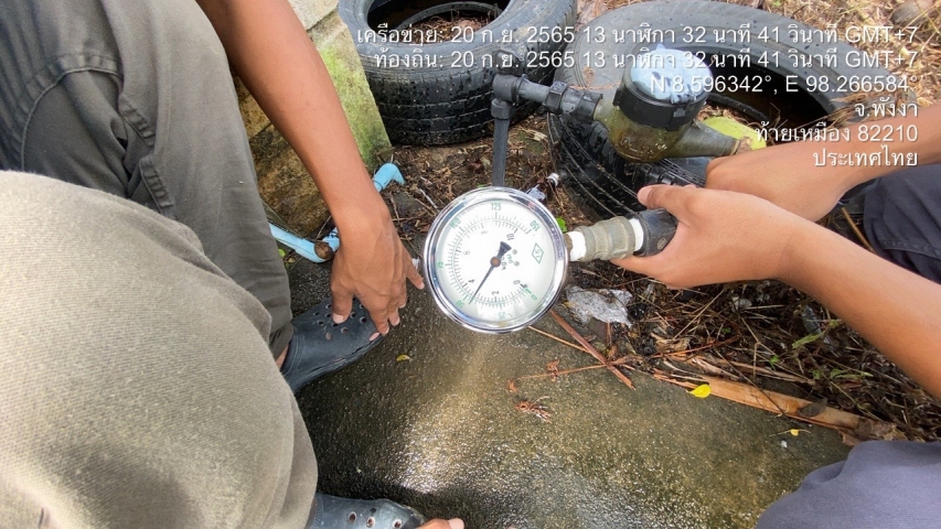 วันอังคาร ที่ 20 กันยายน 2565 จ่าสิบตรีสุเทพ ลี้ยุทธานนท์ ผู้จัดการการประปาส่วนภูมิภาคสาขาตะกั่วป่า มอบหมายนายชาติชาย มีชัย หัวหน้างาน 8 งานบริการและควบคุมน้ำสูญเสีย และทีมงานบริการฯ ดำเนินการตรวจวัดแรงดันน้ำ เพื่อตรวจสอบแรงดันน้ำที่เหมาะสมตามมาตรฐานการให้บริการของกปภ. ซึ่งผลการตรวจสอบอยู่ในเกณฑ์มาตรฐานที่ กปภ.กำหนด พร้อมโบล์วตะกอน ตามแผนระบายตะกอนในเส้นท่อ เพื่อรักษาคุณภาพน้ำประปาให้ใสสะอาด ตามมาตรฐานของ กปภ. พื้นที่ อำเภอท้ายเหมือง จังหวัดพังงา